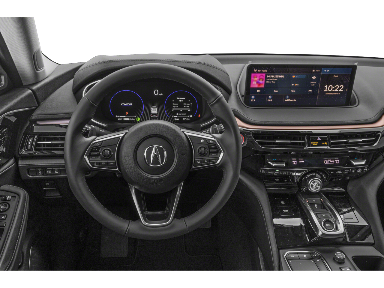 - Radio: AM/FM Acura Premium Audio System -inc: 9-speakers, 12.3" HD dual-content center display w/True Touch Interface, Wi-Fi hotspot capability, natural language voice recognition, AcuraLink connected services, AcuraLink security and remote services (3 years), wireless Apple CarPlay and Android Auto compatibility, Alexa built-in, HD Radio, SiriusXM satellite radio (SiriusXM requires a subscription after any trial period, If you decide to continue your SiriusXM service at the end of your trial subscription, the plan you choose will automatically renew and bill at then-current rates until you call SiriusXM at 1-866-635-2349 to cancel, See our Customer Agreement for complete terms at www.siriusxm.com, Fees and programming subject to change, Available in the 48 contiguous United States and D.C, SiriusXM and all related marks and logos are trademarks of SiriusXM Radio Inc.), USB audio interface, Bluetooth® HandsFreeLink wireless telephone interface w/streaming audio and Speed-Sensitive Volume Compensation (SVC)